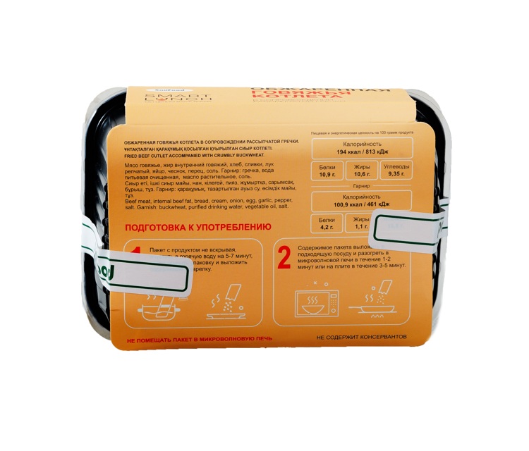 SMART LUNCH Обжаренная говяжья котлета в сопровождении рассыпчатой гречки 270 гр